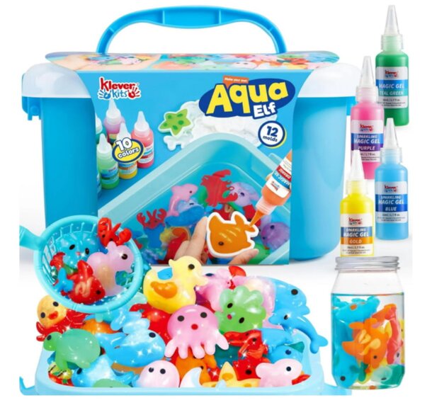 The Aqua Elf kit is an interactive way to bring sea creatures to life using magic molds, gels, and powder for endless fun. Image courtesy Walmart.
